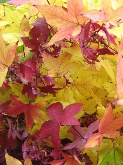 De verkleuring van de amberboom is mede afhankelijk van de standplaats en grondsoort. Op de drogere gronden zullen de bladeren geeltinten krijgen. Op de vochtige gronden zullen de bladeren verkleuren naar diep oranjerode tinten.