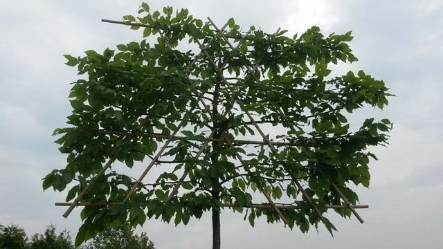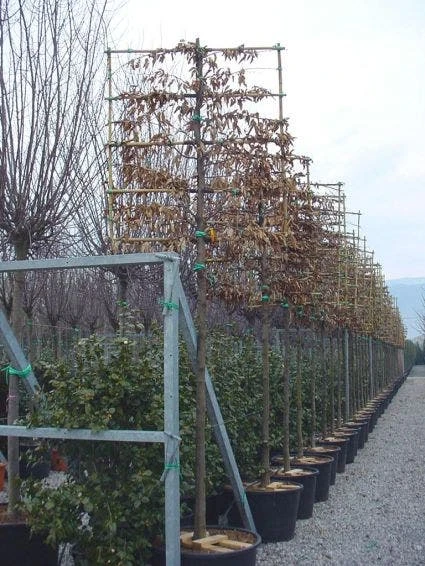 De leibomen met een stamdikte van 10-12cm, begint de leivorm op een hoogte van circa 180cm.
