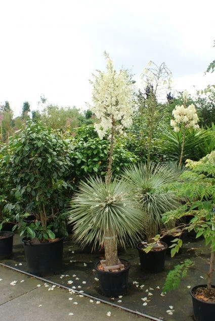 Yucca flaccida ‘Golden Sword’ (Palmlelie) is een mooie yucaa voor in de tuin of een in pot.
