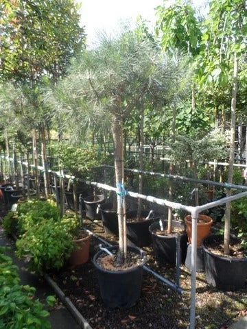 Deze Pinus pinea is als plant op stam gekweekt, hij is echter ook te verkrijgen als hoogstamboom (vertakking vanaf 180cm.)