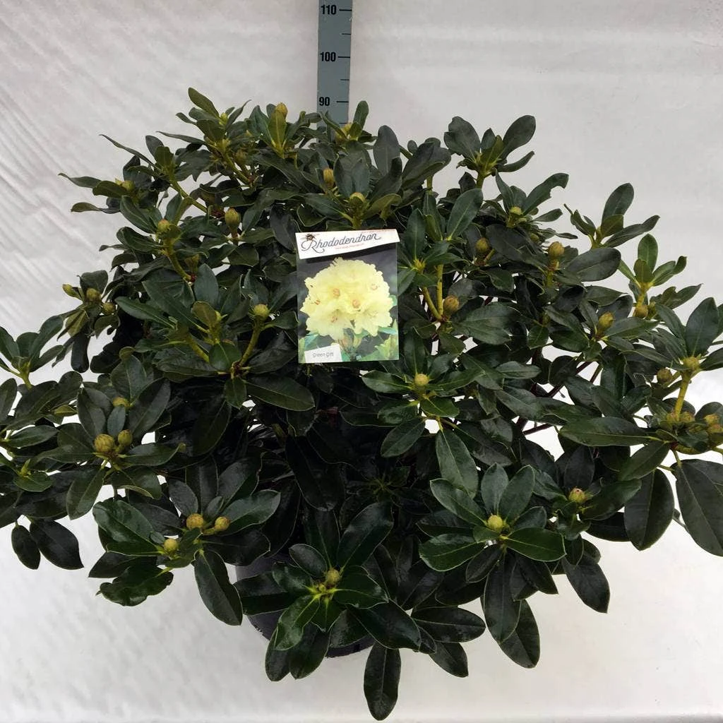 Doordat Rhododendrons vaak even hoog als breed worden, meten sommige kwekers de maat ook in de breedte.