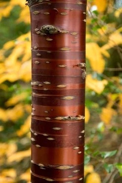 Prunus serrula (Tibetaanse sierkers) is een mooie sierkers die niet al te groot wordt (zo’n 6-8m hoog), met een bijzondere en opvallende mahoniebruin tot bruinrode en glimmende bast.